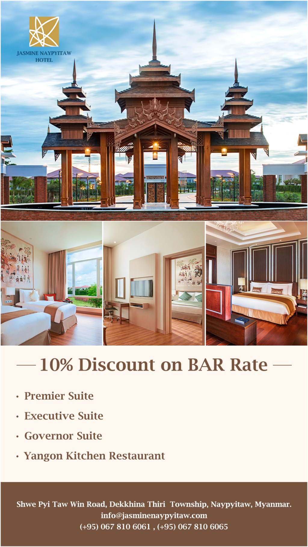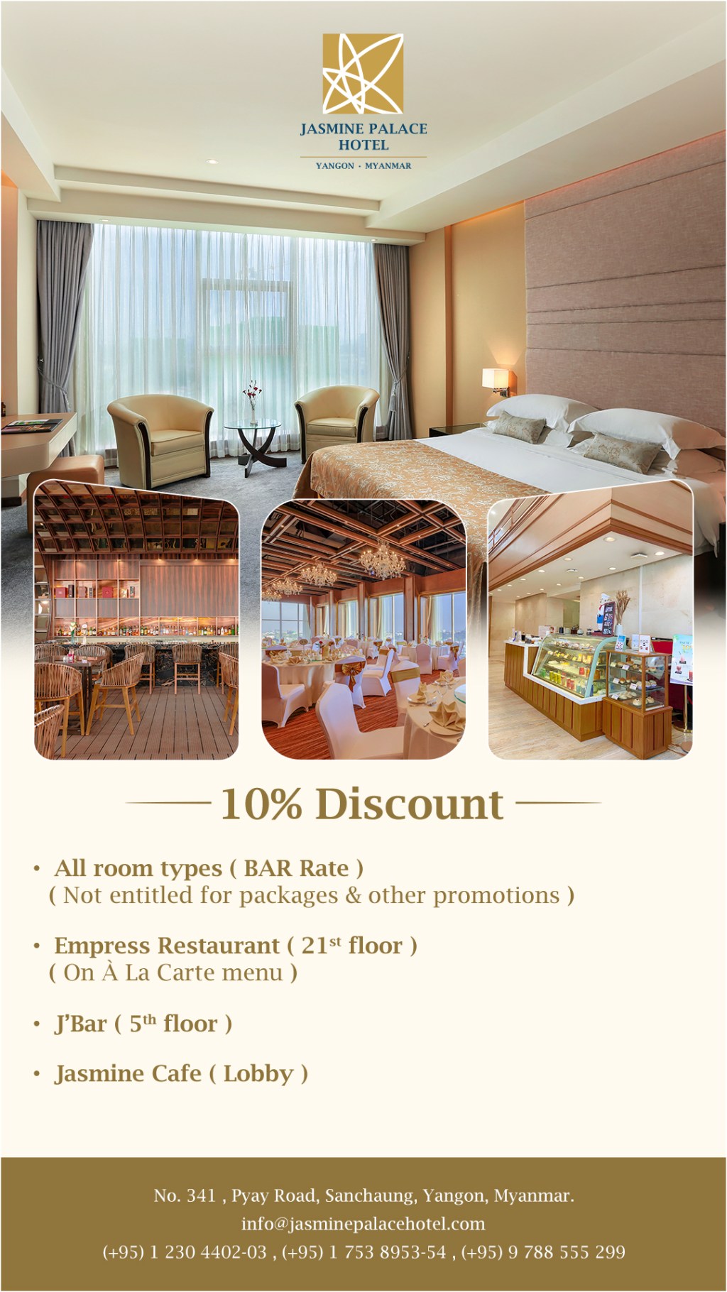 10% discount on BAR 5 rate for Premier Suite10% discount on BAR 5 rate for Executive Suite10% discount on BAR 5 rate for Governor Suite10% discount at Yangon Kitchen Restaurant Offer Period23 Sep 2025 to 23 Sep 2026